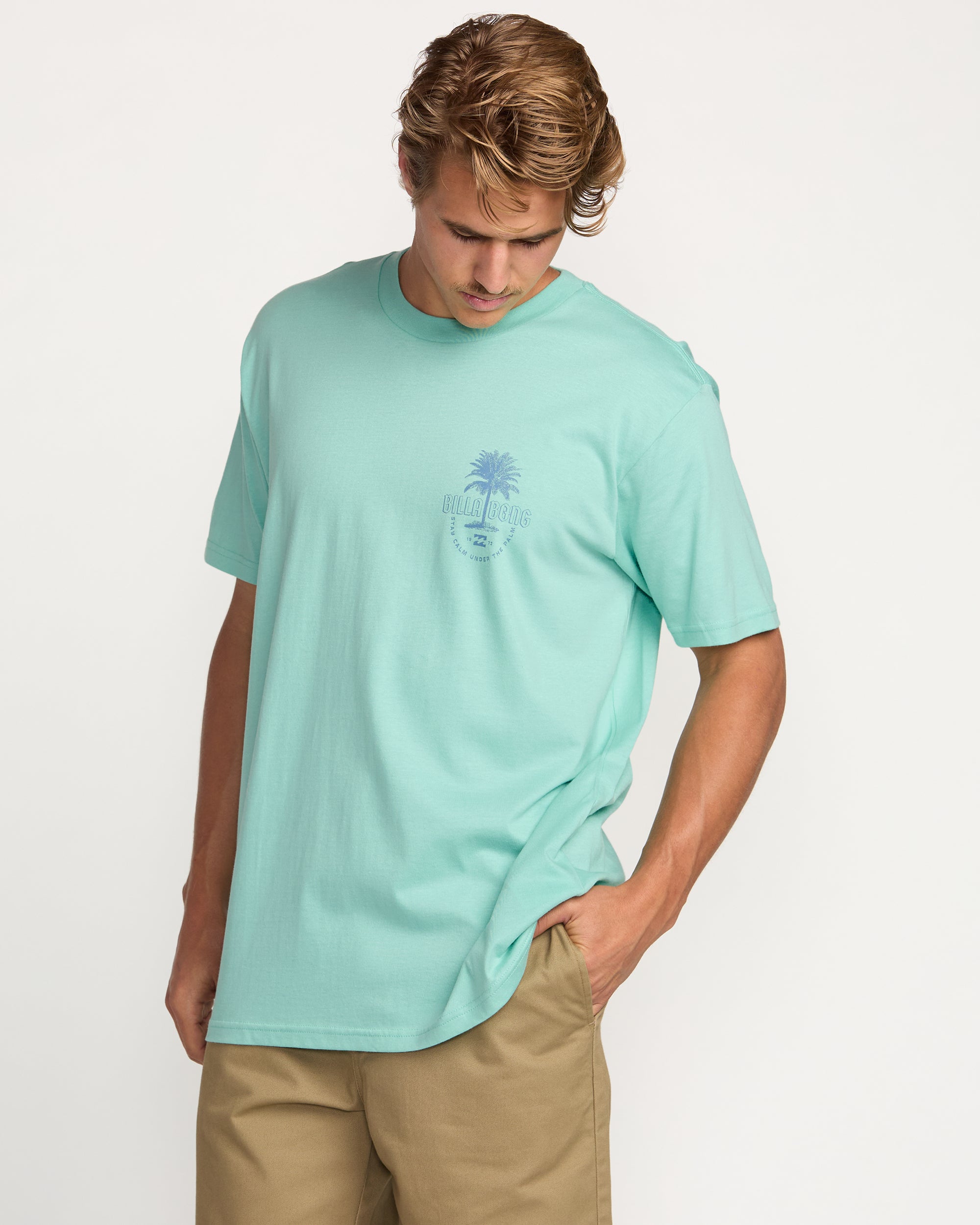 Stay calm under the palm in our premium tee. It offers timeless style in soft. lightweight 100% ringspun cotton. Subtle vintage-washed fabric and graphics complement the classic relaxed fit and ensures a smooth. broken-in feel straight from the start.