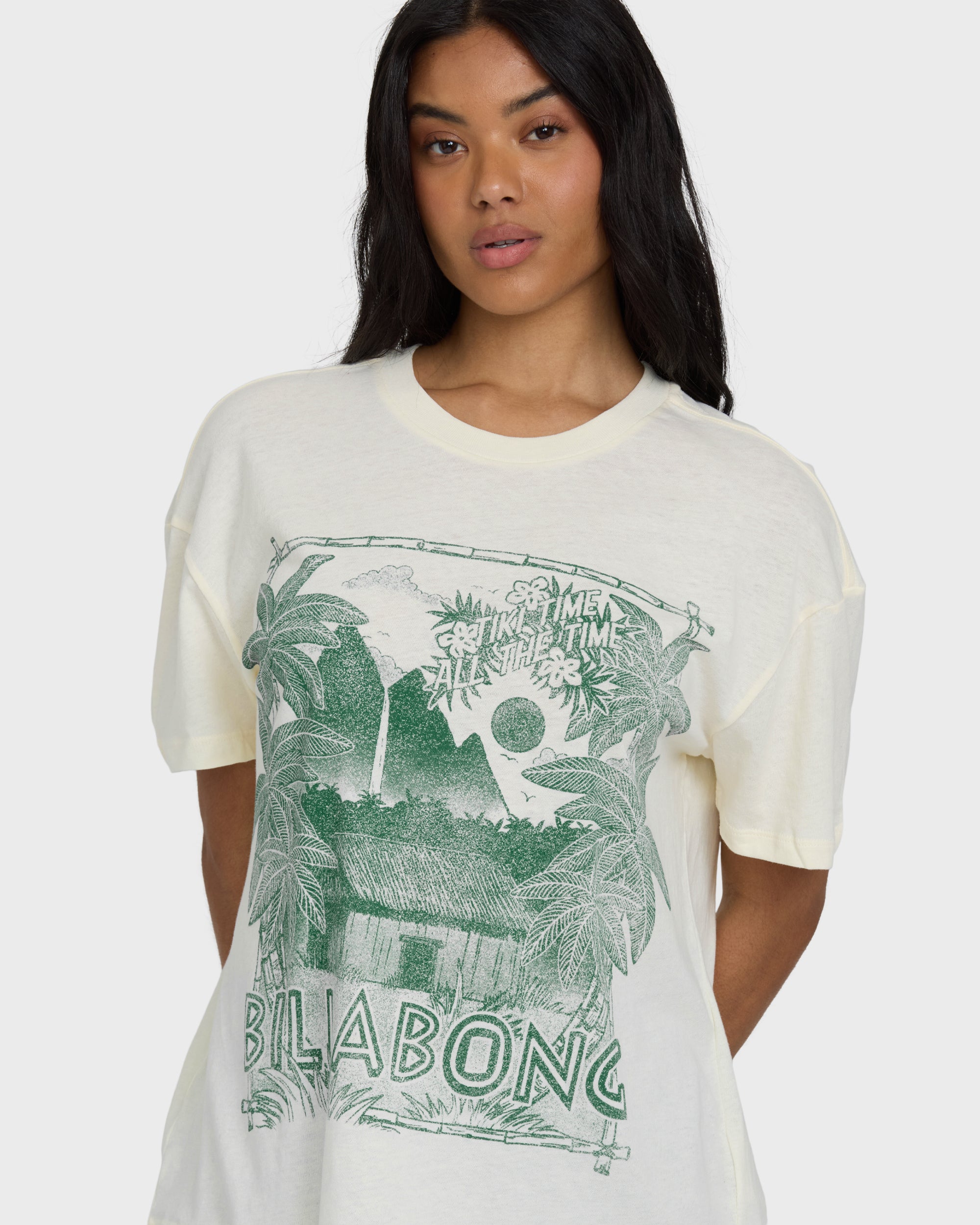 Capture sweet memories in our Billabong Women’s Sweet Moments Tee. This relaxed cotton jersey top features a crew neckline. drop‑shoulder seams. short sleeves. and a bold tropical tiki graphic.