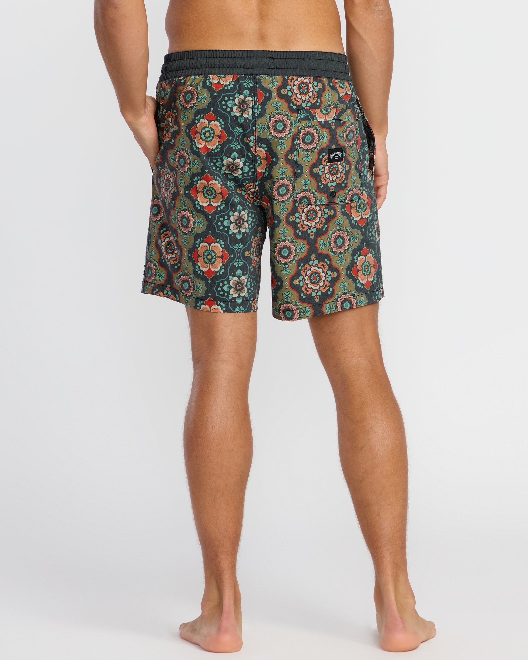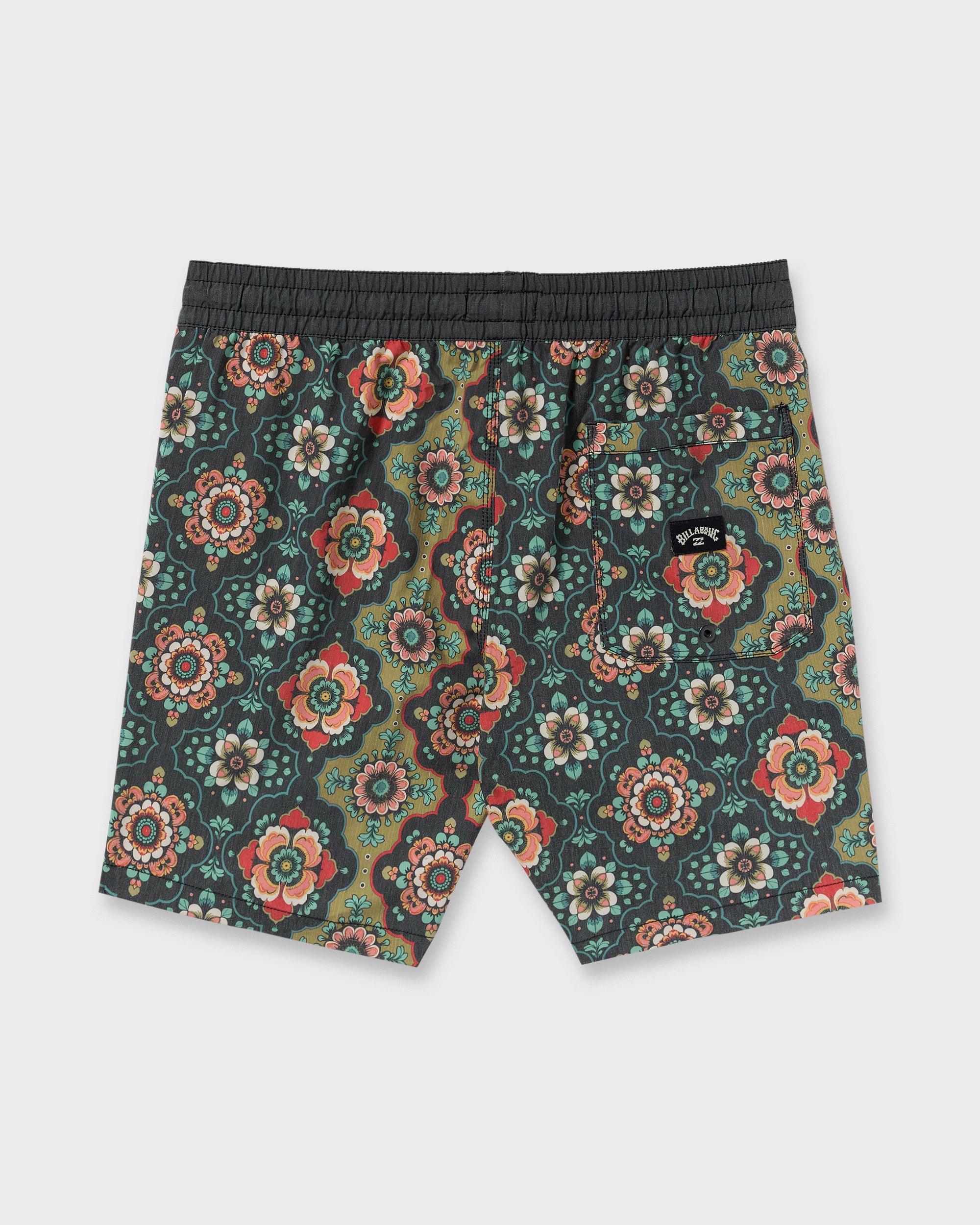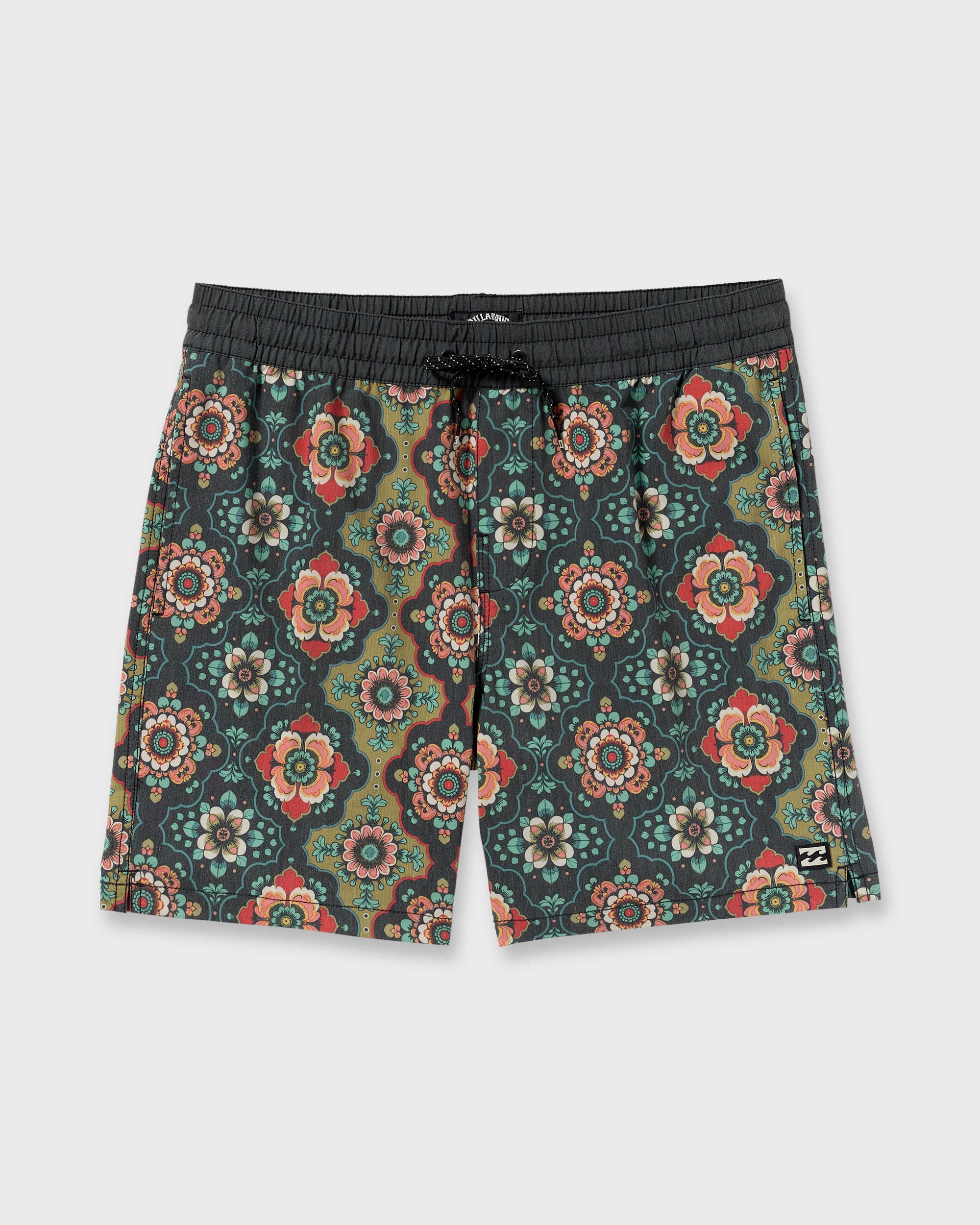 Our comfy layback trunks keep things easy with a 16-inch length and elastic waist. Pro stretch fabric moves with you. while side and back pockets hold essentials for spontaneous summer adventures. Featured here in the Black colorway.