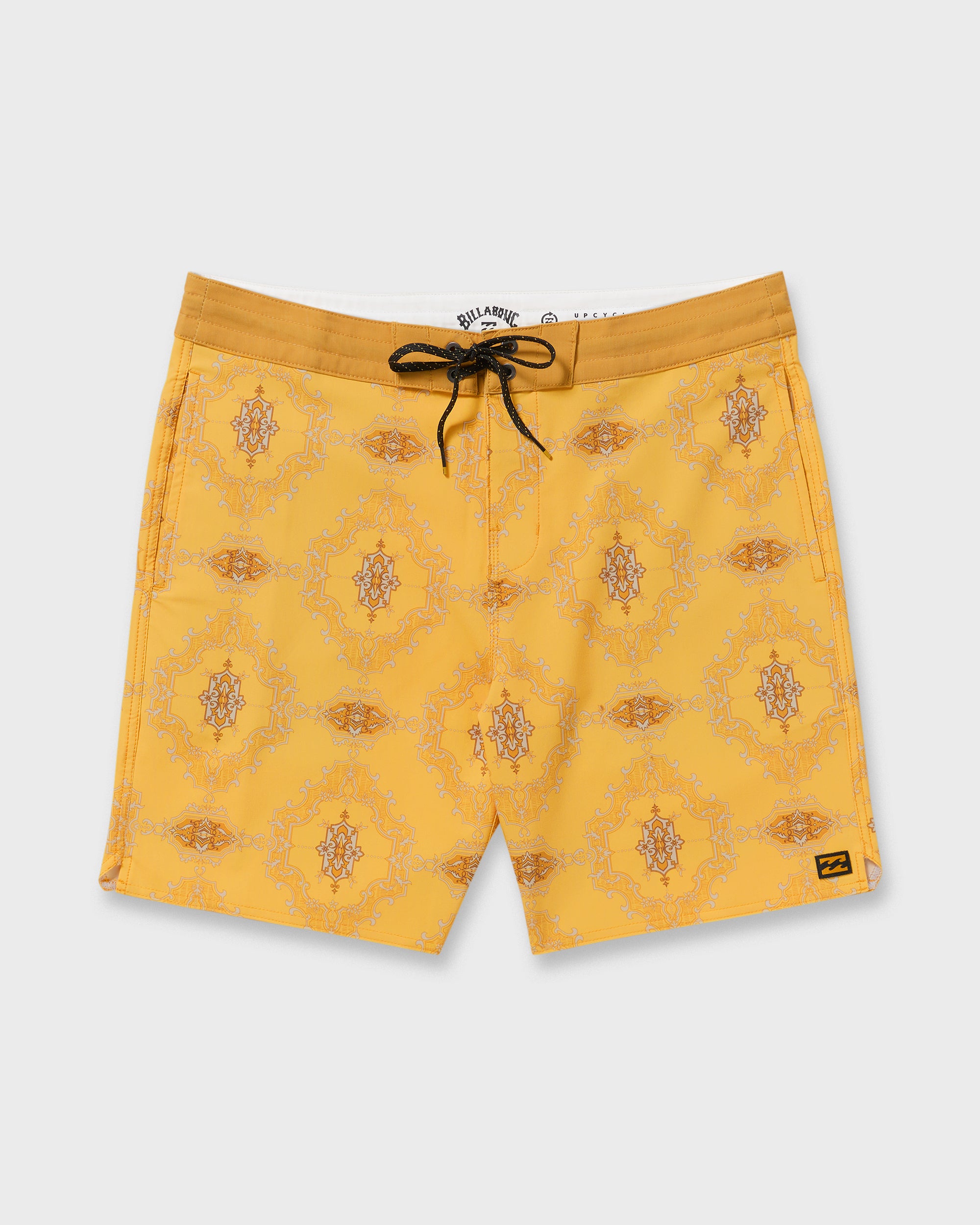 Lightweight yet durable poly-cotton stretch boardshorts with a versatile 18 lo tide length. Featuring handy back patch and side seam pockets. plus a secure drawstring waist. these Billabong shorts were made for endless summer adventures. Featured here in the Dust Yellow colorway.