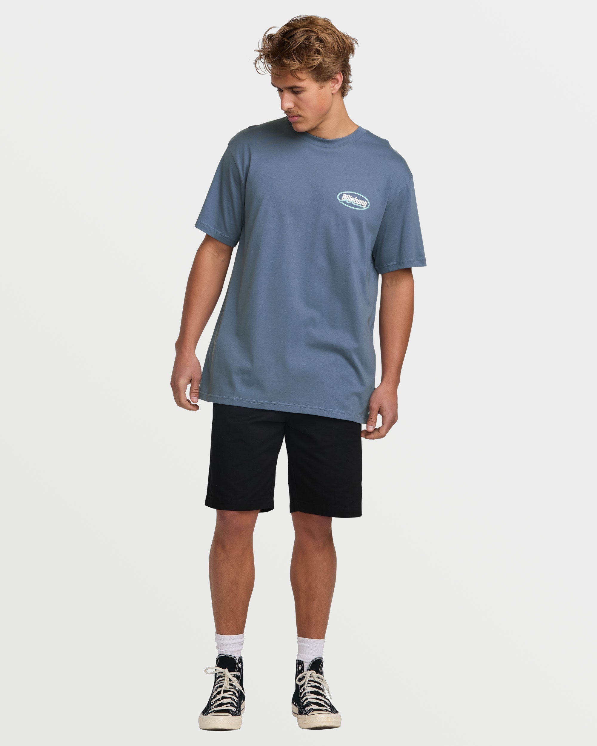 Crafted from soft. lightweight 100% cotton jersey. this Billabong tee masters laidback cool. The timeless. garment-washed fit feels lived-in from day one. while the printed graphics deliver a fresh pop of style. Whether worn solo or layered. it’s an effortless warm-weather essential. Featured here in the Slate Blue colorway.
