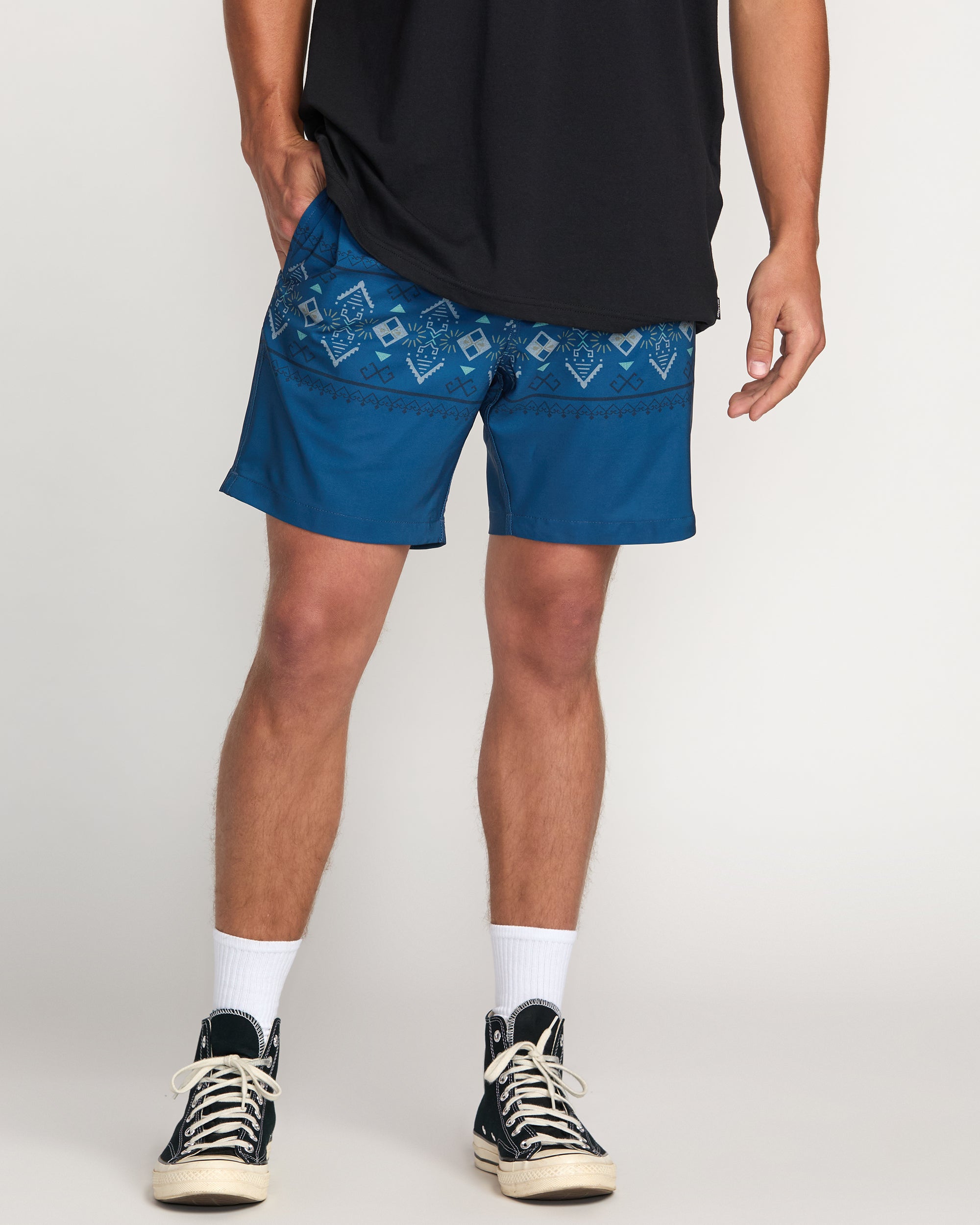 Hit the beach or trail in our Billabong 4-way stretch hybrid shorts. Moisture-wicking fabric with secure pockets keeps you dry and ready for action. The regular fit and elastic waistband provide ultimate mobility. while the quick-dry finish allows for seamless water-to-land transitions. Featured here in the Deep Blue colorway.