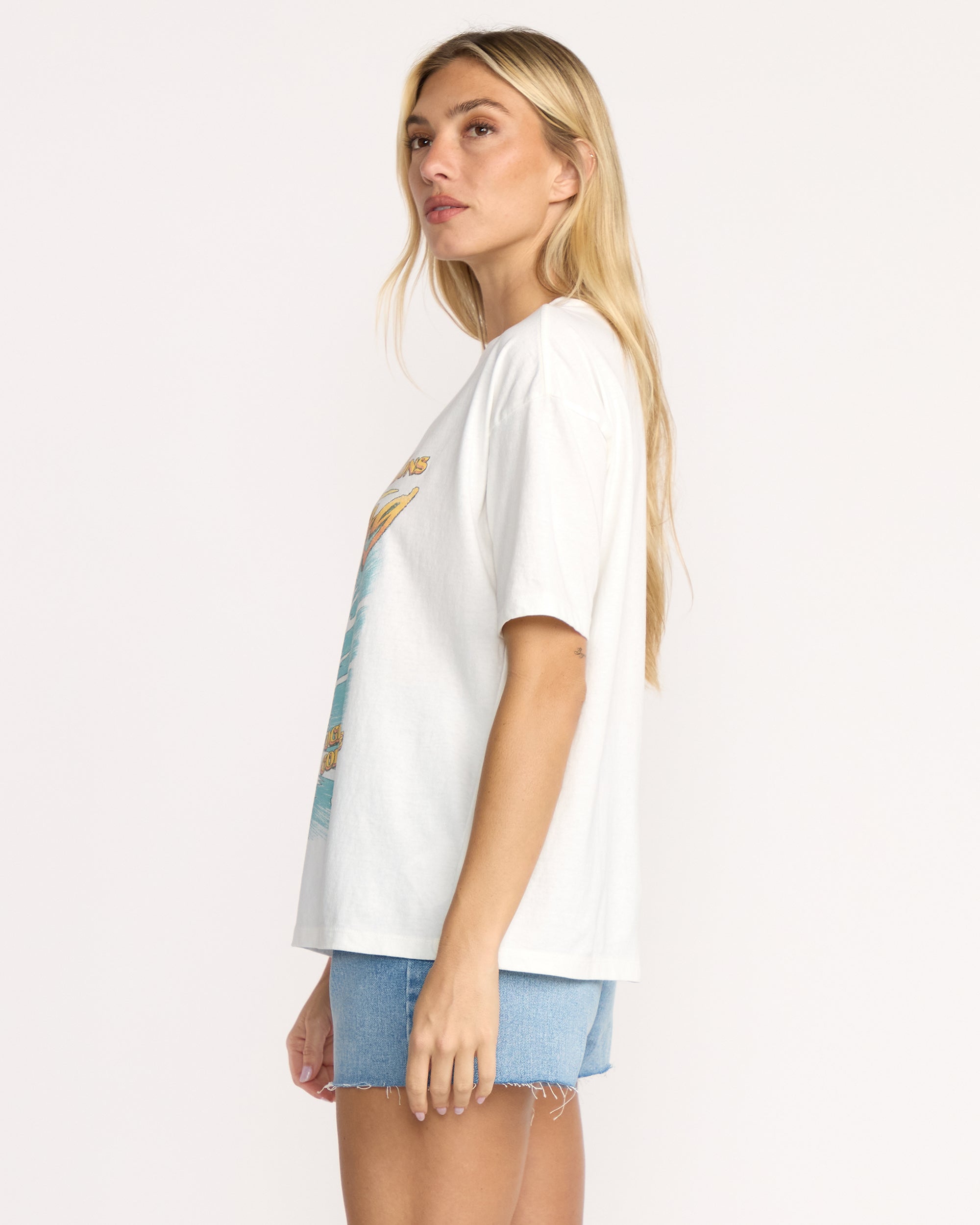 Our cotton jersey t-shirt brings casual cool to your wardrobe with its oversized boy-tee fit and screen-printed graphics. The garment-washed finish gives it that perfectly lived-in feel from day one. Featured here in the White colorway.